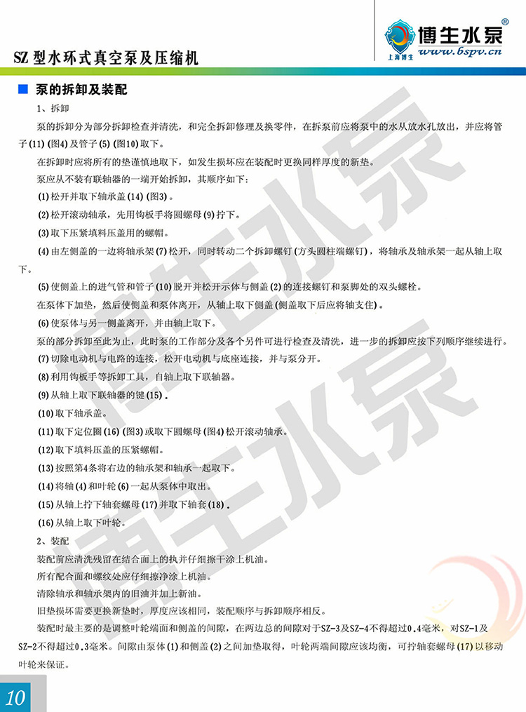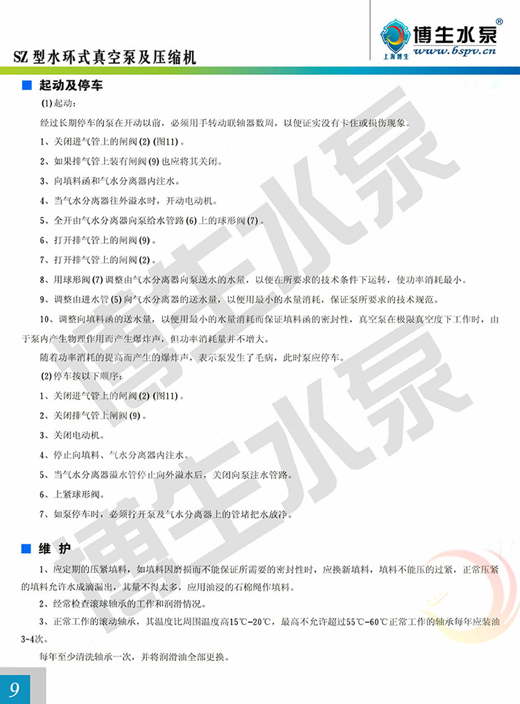 SZ型有SZ-1、SZ-2、 SZ-3及 SZ-4四種規格,泵所形成的最大真空度分別在86~95%之間。SZ-1及 SZ-2所能形成的最大壓力為1.0~1.4公斤/厘米2,SZ-3及SZ-4在所配電動機功率容許下的最大